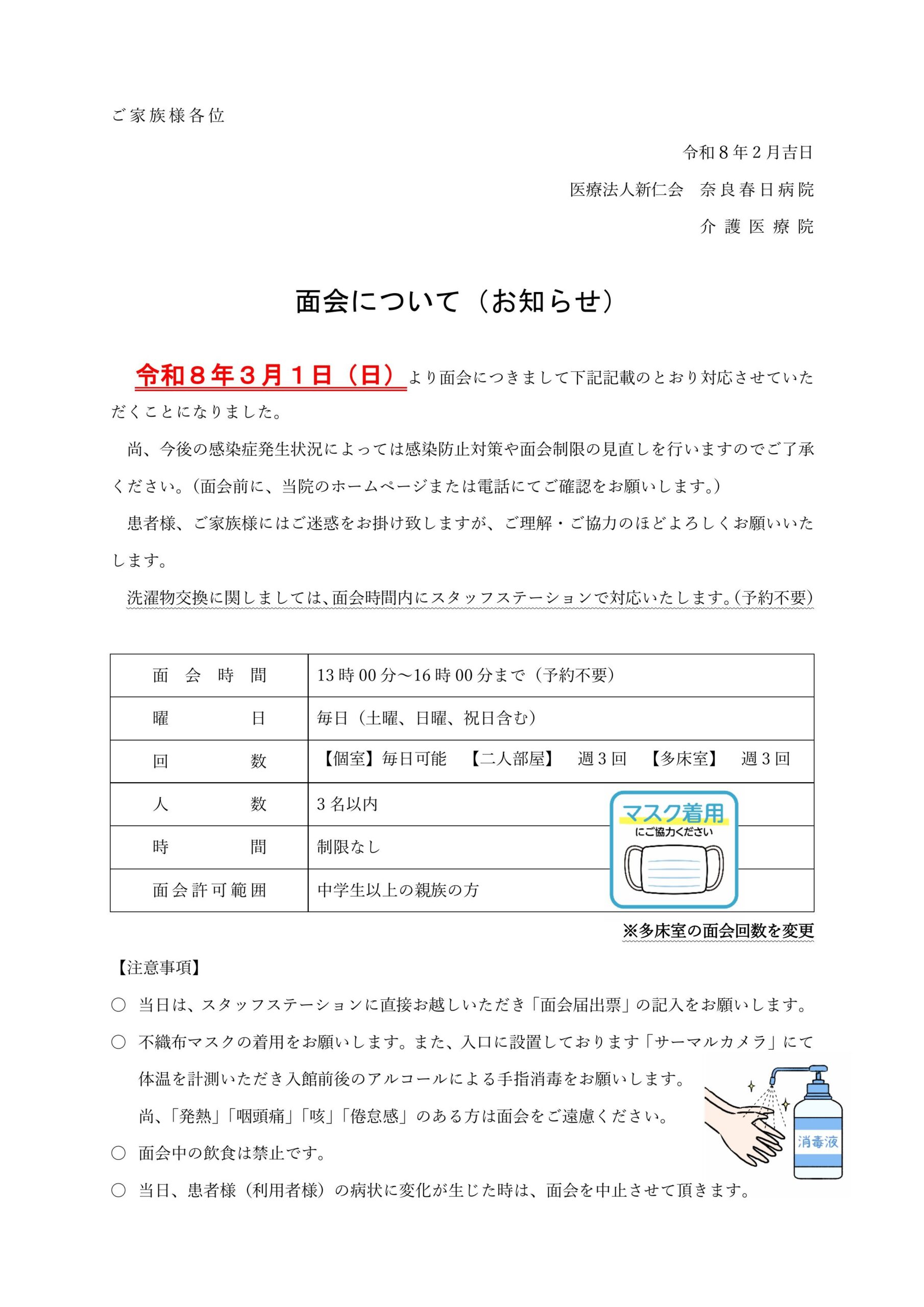 令和8年3月1日(日)よりの面会について一部ルールが変更となります。